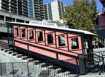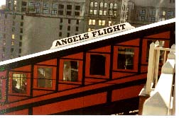 Angel's Flight (open 6 a.m. to 12:15 a.m., round trip fare 5¢) at 3rd and Hill St is a funicular railway transporting passengers 315 feet up and down the steep slope of Bunker Hill between Hill and Olive Streets. During the 1920's it carried as high as 12,000 passengers a day. [2] |